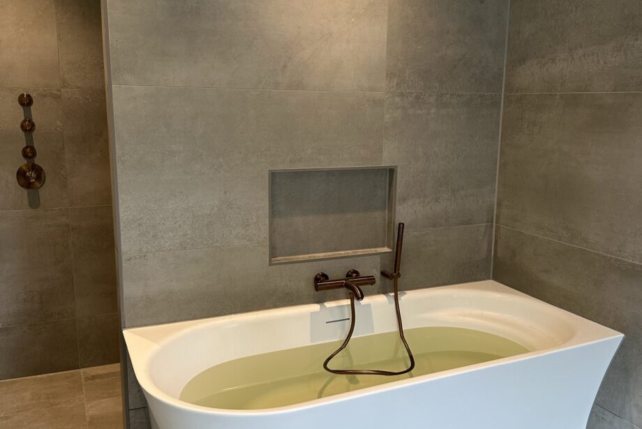 Badkamer gerealiseerd in een nieuwe ruimte in Lienden.